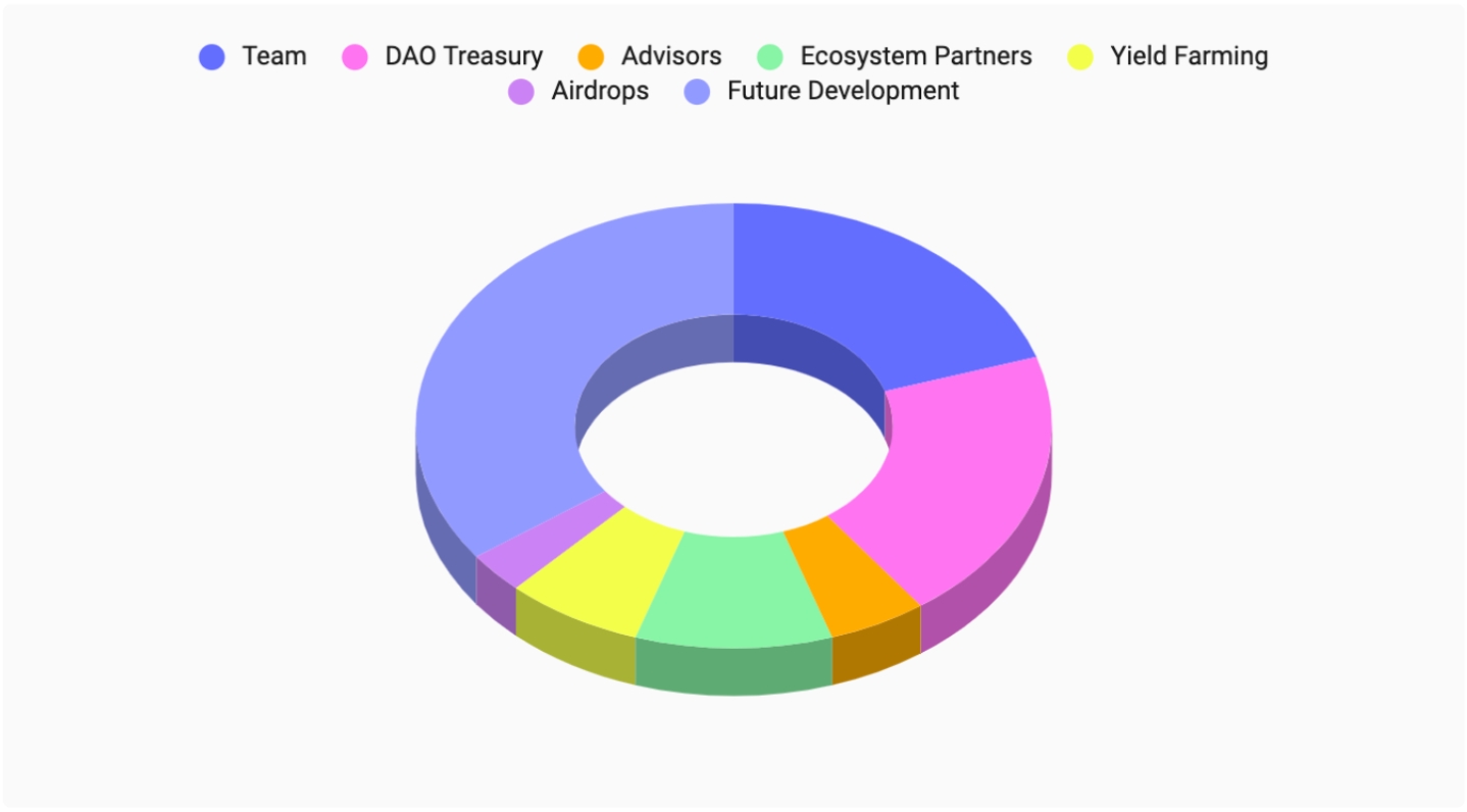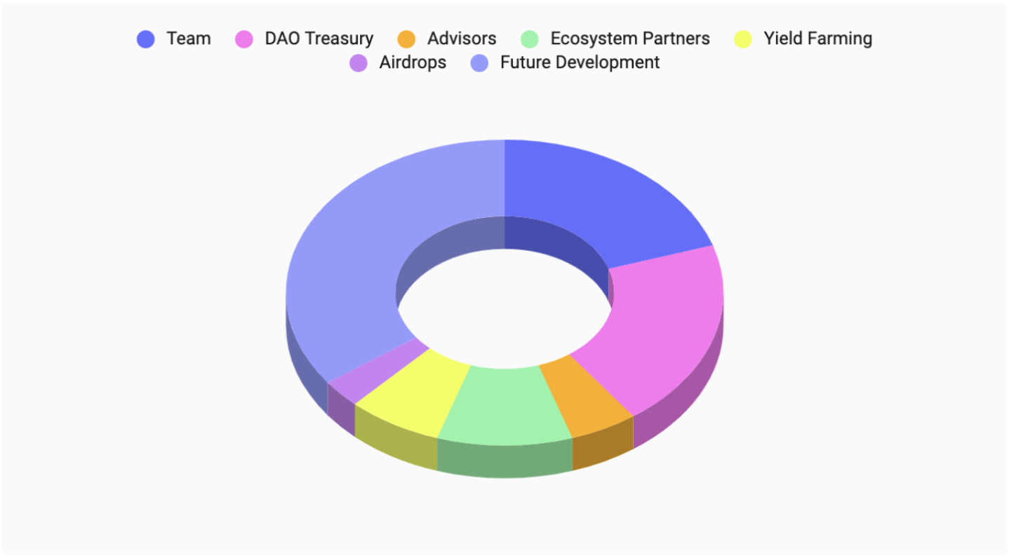 Tokens allocated for funding the future development of the ecosystem such as developer support, marketing, fundraising and administration.