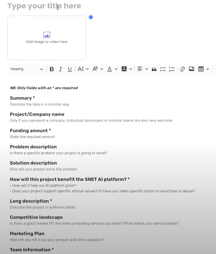 This section is designed to be self-explanatory, requiring minimal clarification. The team has meticulously prepared it to streamline the proposal-writing process, ensuring an effortless experience for individuals eager to submit their ideas.
