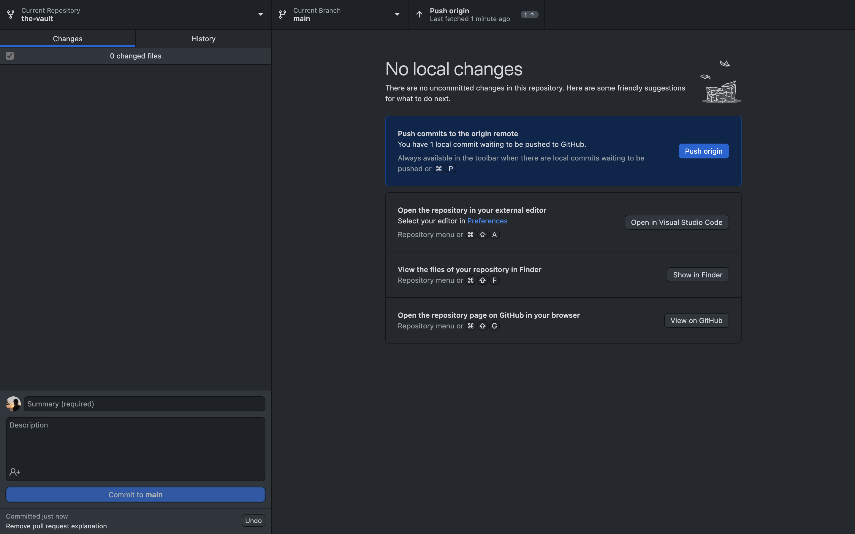 As for the next step, in the bottom left corner write a short summary of your actions and click **commit to main**.