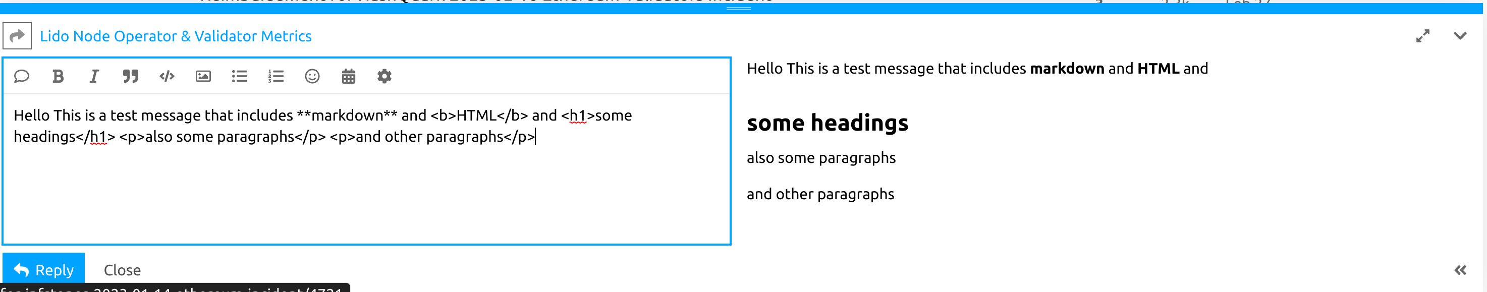 Writing content on Discourse is very simple. You can write your messages in **markdown**, **BBCode** or **HTML** format. Discourse also shows you preview of your message.