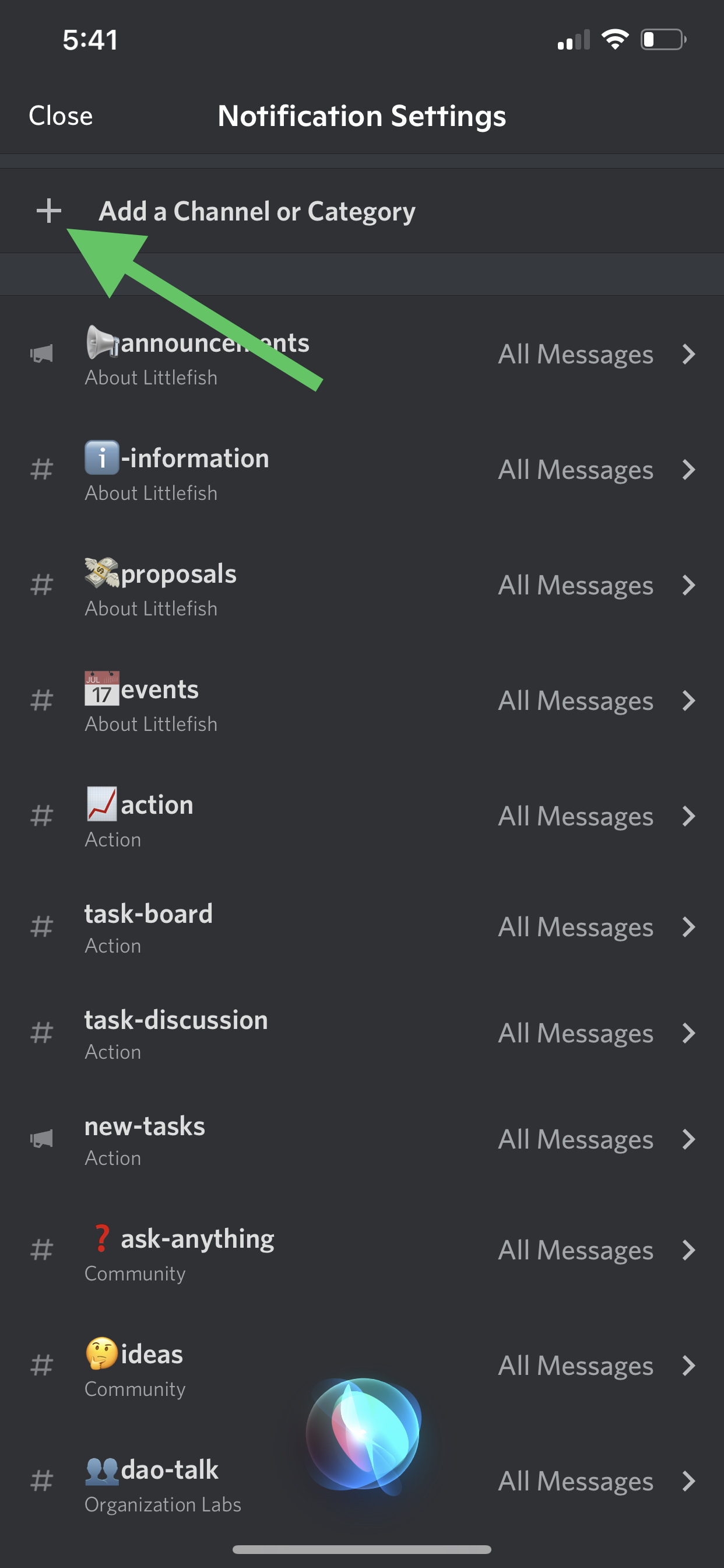 3. Add or delete channels and allow notifications for all messages in these channels.
