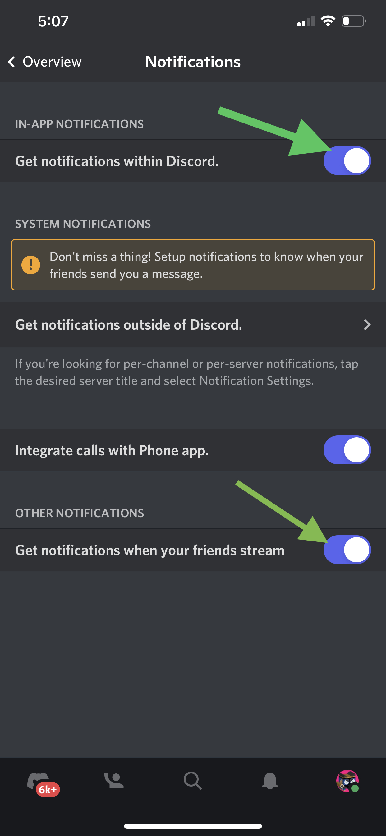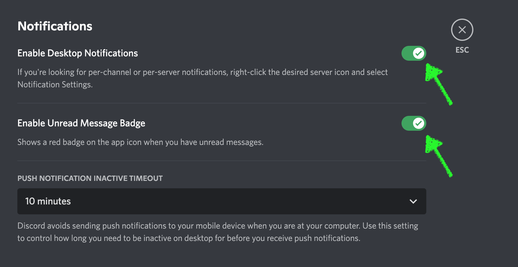 **Step 1:** Setting up your general notifications. These notifications apply to all the servers that you are a part of.
