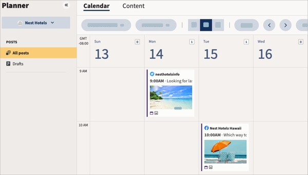 The Calendar lets you view and manage scheduled content. Here, you can also create a new post and set a selected time for the content to be published.
