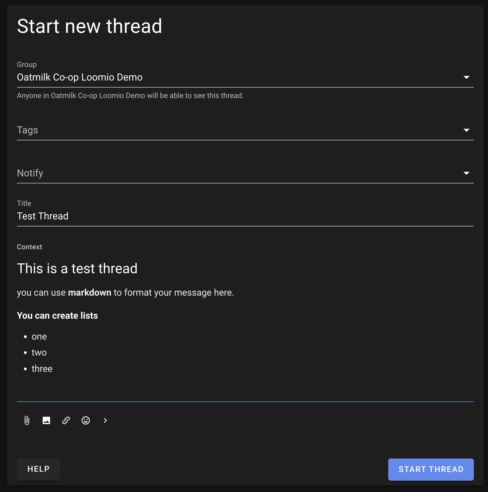 * **Discussion Threads**: Loomio allows members to start discussions on specific topics, ensuring that conversations remain focused and organized.