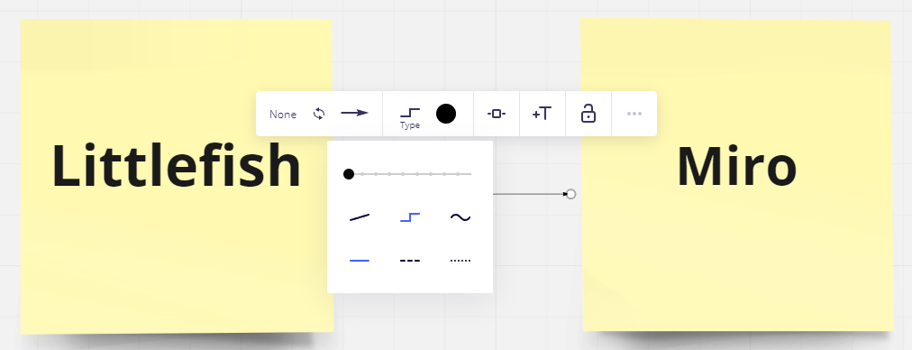 One of Miro’s best features is that you can connect any multiple objects with a line. You can change this line type by simply right clicking on it. Also Miro will remember your selection and next time you are drawing a line it will use your last setting.