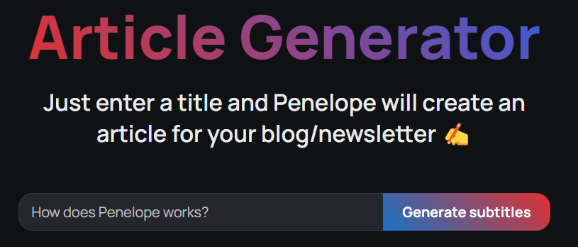 After following the Article Generator link on the website, you can simply create an article with Penelope's AI.