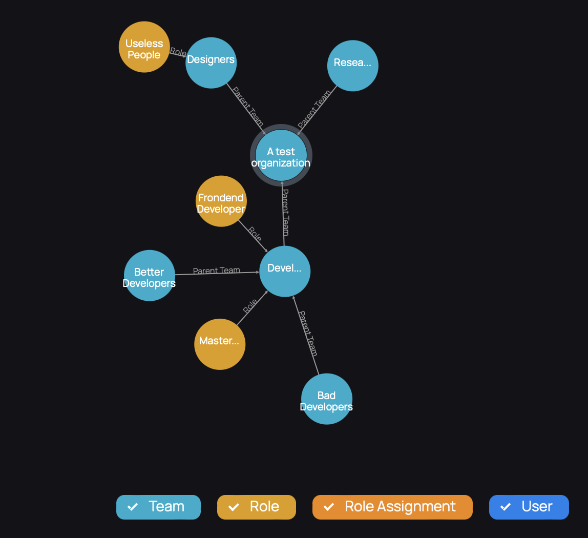 This view is similar to the circles. The advantage of this view is, you can filter teams, roles, role assignments, and users so you can have more clear charts to find what you need.&#x20;