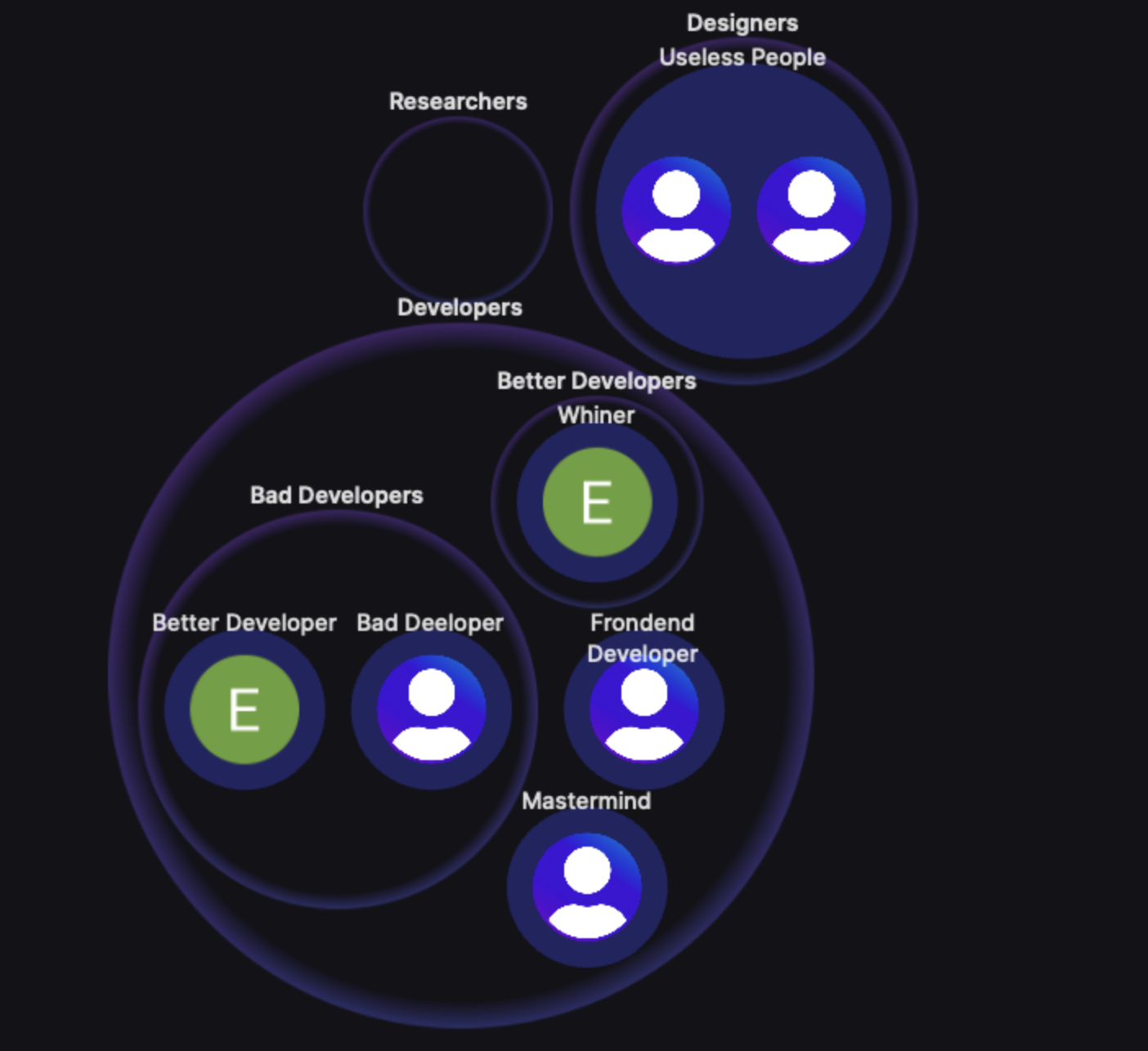 Circles visualize the groups and sub-groups that can be easily understood. Circles can be zoomed in and out so even if the organization has lots of groups and members, they do not become overwhelming.&#x20;