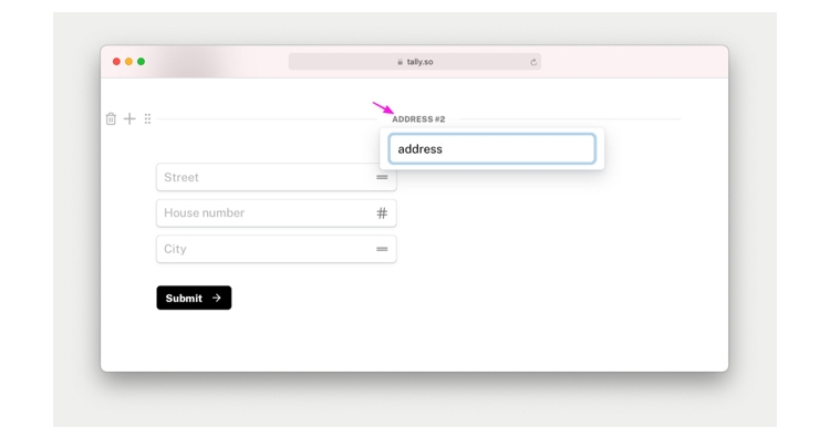 Blocks on Tally can easily be selected, moved, and duplicate to save time. You can select one or multiple blocks and drag them to another position on the canvas; You can also use the Tally.so keyboard shortcuts