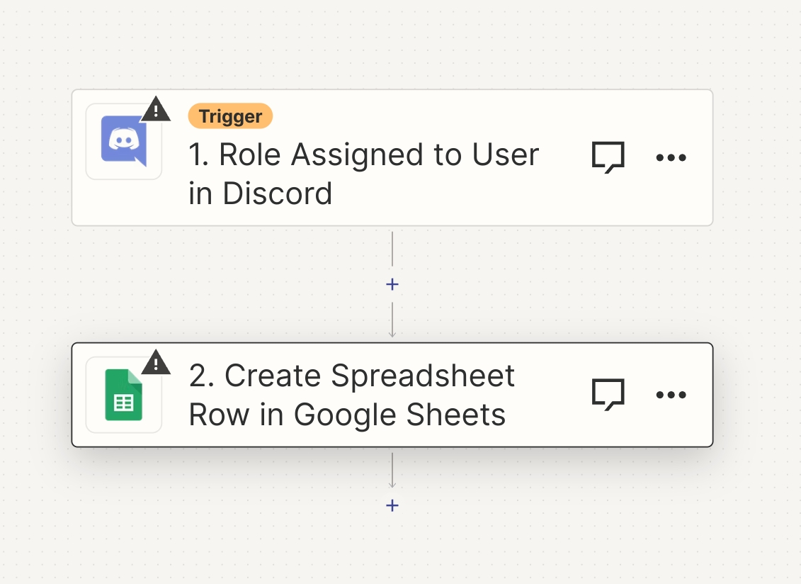 Here is a simple Zap, that adds a new row to a Google Sheets doc when a role is assigned to a user in Discord.