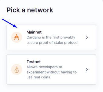 After you've successfully installed Flint, click "Lets Begin", choose your preferred language, agree to the terms and conditions. Once you land on the Network screen, select the Mainnet button. Confirm, follow the prompt and "Create New Wallet." Once that is done, you,ll need to fund your wallet with some ADA, next we need to configure MetaMask.